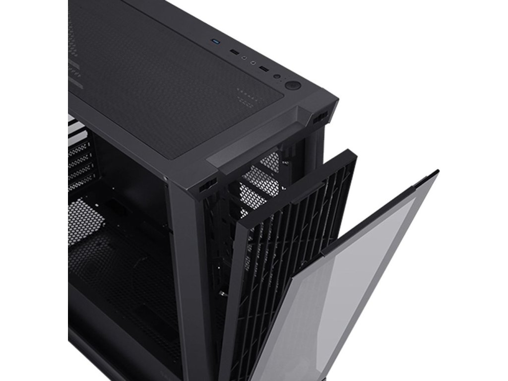 Levá strana PC skříně obsahuje bočnici z tvrzeného skla. Skříň je určená pro základní desky podporující platformu Intel i AMD. Mimo formátu ATX je kompatibilní i s formátem Micro ATXa Mini ITX. Napájecí zdroj se umísťuje do dolní části skříně. Spodní mřížka je osazena vysouvacím prachovým filtrem, horní prachový filtr je uchycený magnety a je odnímatelný. Ventilátory mají 4pin s MOLEX konektory a připojují se vzájemně na sebe bez nutnosti jakéhokoliv řadiče. Ovládání ventilátorů je možné pouze pomocí LED tlačítka na kontrolním panelu skříně.