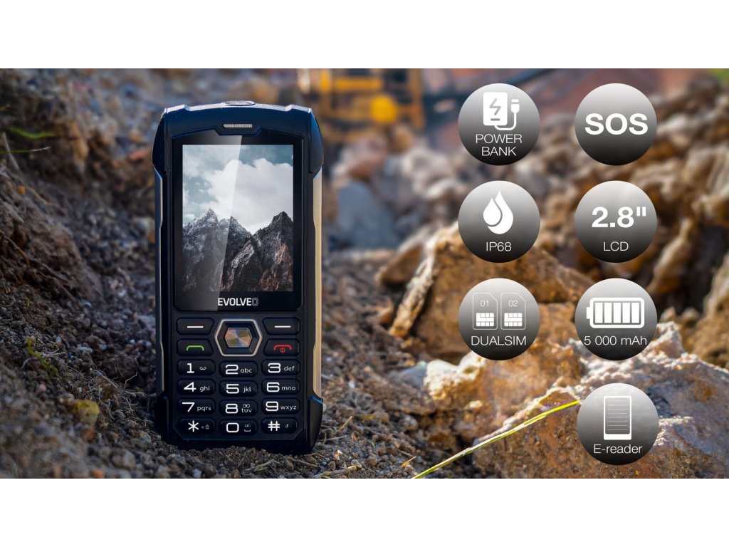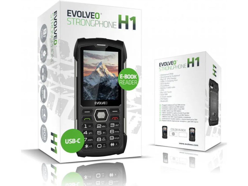 EVOLVEO StrongPhone H1, vodotěsný odolný Dual SIM telefon, černá-šedá• Barevný 2.8“ IPS displej