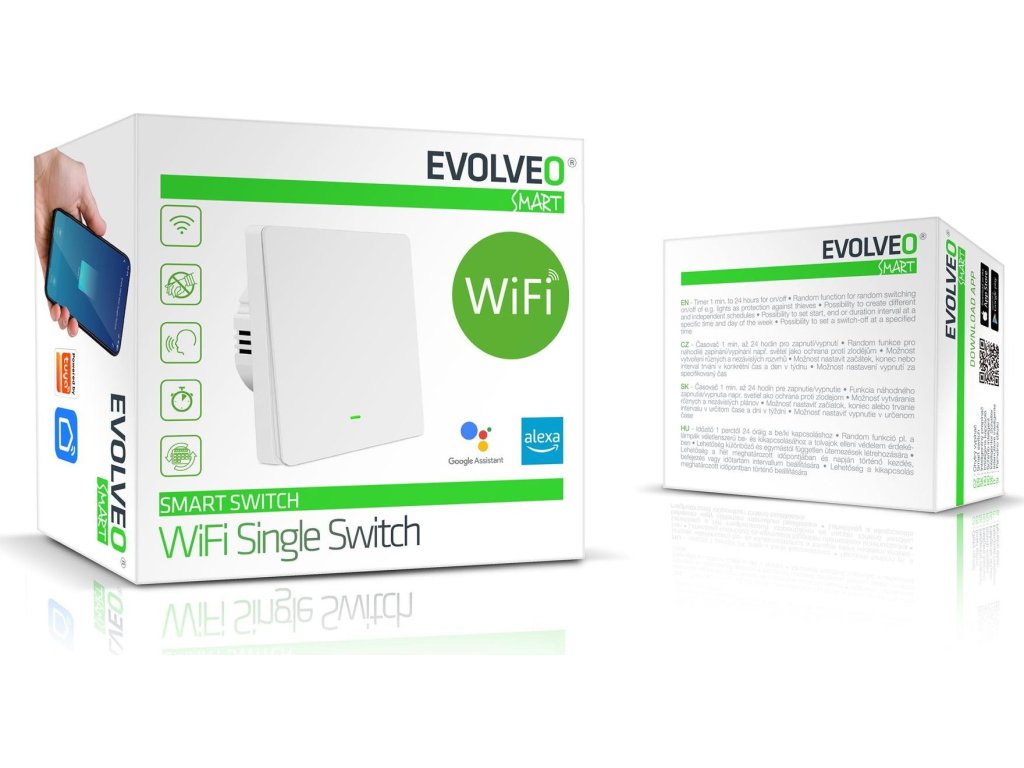 EVOLVEO WiFi Dual Switch, chytrý vypínač• Flexibilní ovládání: tlačítka, mobilní aplikace, hlasové příkazy