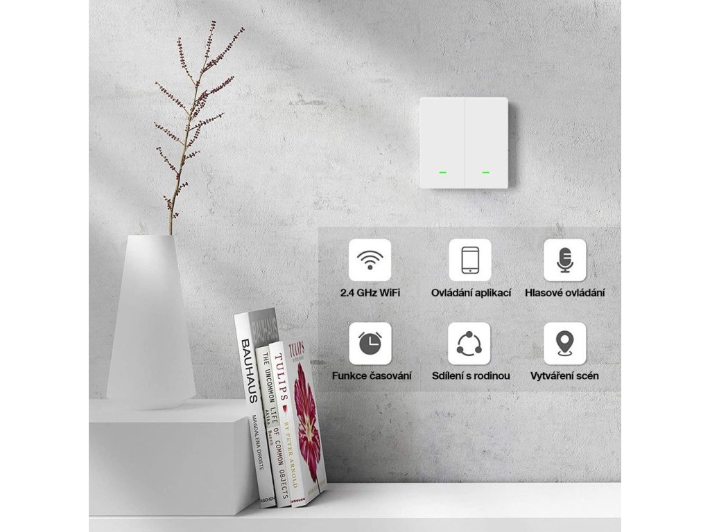 Chytrý vypínač nabízí flexibilní způsoby ovládání, které se přizpůsobí vašim preferencím. Můžete světla zapínat a vypínat prostřednictvím tlačítek přímo na vypínači, pohodlně pomocí mobilní aplikace nebo jednoduše hlasovými příkazy. Tato široká škála možností umožňuje ovládat osvětlení dle potřeby.
