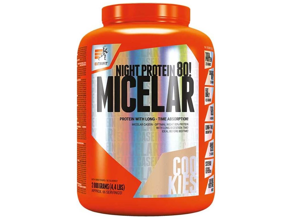 Proto bývá micelární kasein často označován také jako „night protein“ (noční protein). V průběhu spánku pak dochází k postupnému uvolňování aminokyselin a jejich konstantní dodávce ke svalům, které tak jsou zásobeny stavebními látkami i v průběhu noci. Příjem toho vysoce kvalitního zdroje proteinu přispívá k růstu svalové hmoty a k jejímu udržení v situacích, kdy je ohrožena katabolizací. Určeno pro zvláštní výživu - vhodné pro sportovce a pro osoby při zvýšené tělesné zátěži.Proteiny EXTRIFIT® – česká výroba