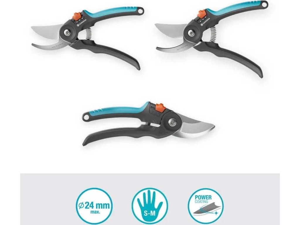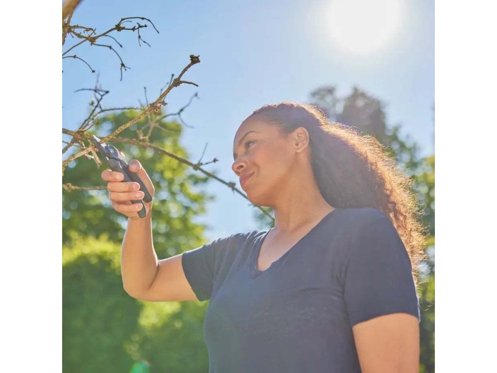 Tyto zahradní nůžky jsou praktické a přenosné a nabízejí skvělý řezný výkon v lehkém a pohodlném balení. Pyšní se ergonomickým designem rukojeti s měkkými prvky od společnosti GARDENA a jsou navrženy pro pohodlí uživatele a minimalizaci námahy rukou pro stříhání bez únavy. Rukojeti jsou vyztuženy skelným vláknem pro větší stabilitu a jsou vyrobeny z > 45 % postindustriálního recyklovaného plastu. Dvoustupňové variabilní otevírání poskytuje skvělý uživatelský komfort pro všechny velikosti rukou.