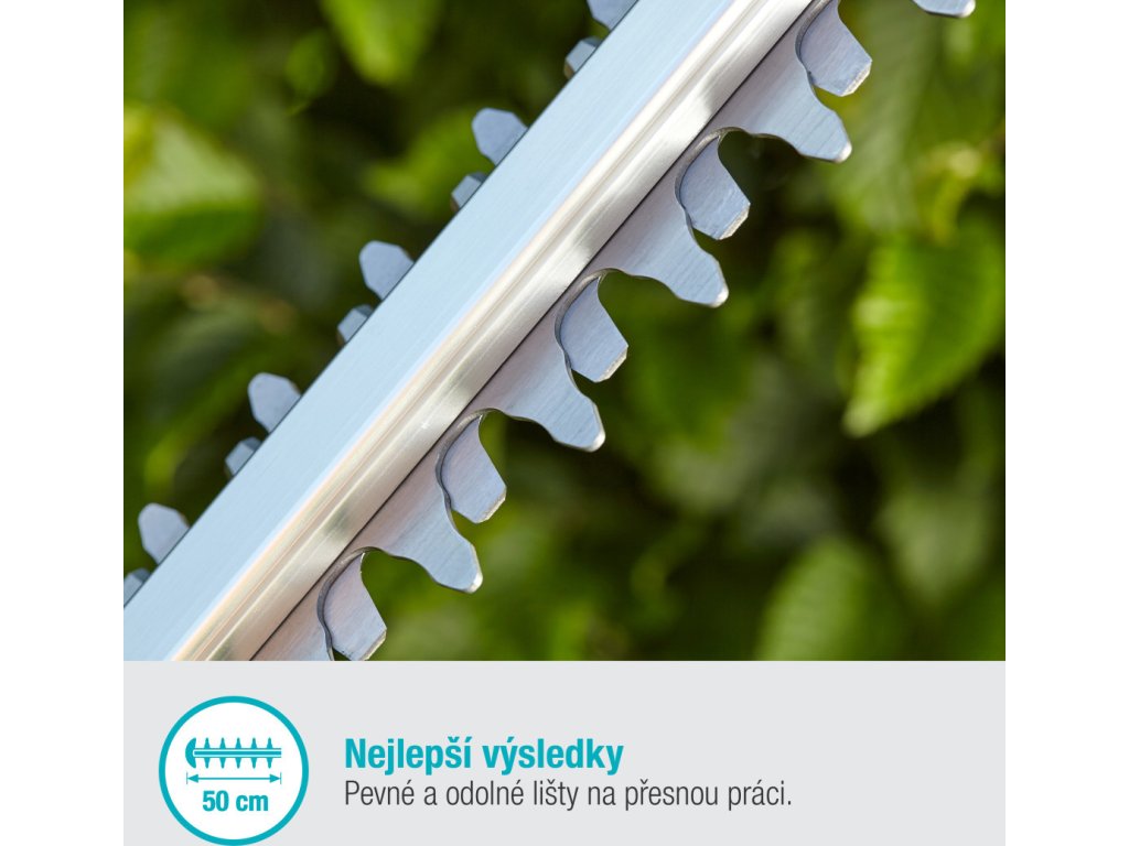 Díky rukojeti ErgoLine s integrovaným spínačem vám nůžky s délkou nožů 50 centimetrů vždy pohodlně padnou do ruky, bez ohledu na to, v jaké pozici pracujete. Chránič proti nárazu na špičce lišty zajišťuje při stříhání blízko země nebo podél zdí, aby se nože nepoškodily. Geometrie nožů je dokonale navržena tak, aby byl střih vždy čistý a práce byla snadná - bez přerušování. Věříme, že vás výsledky ohromí! S modelem ComfortCut již není práce únavná a namáhavá, ale bude hotová v okamžiku.