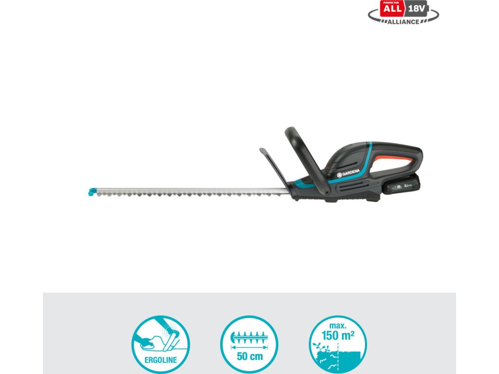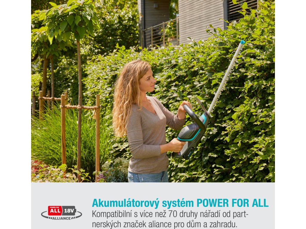 GARDENA akumulátorové nůžky na živý plot ComfortCut 50/18V P4A v sadě se dodávají s akumulátorem 18 V POWER FOR ALL a s nabíječkou. Aliance POWER FOR ALL je jednou z největších aliancí předních světových výrobců akumulátorů různých značek. Akumulátor je proto kompatibilní s řadou dalších přístrojů pro dům a zahradu – takže ušetříte peníze a zajistíte si trvalou flexibilitu. Vášeň poháněná značkou GARDENA - zahradní akumulátorové vybavení, které vám poskytuje svobodu při práci.