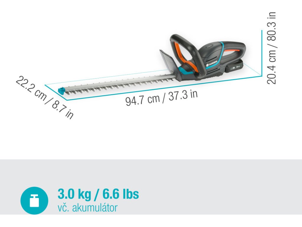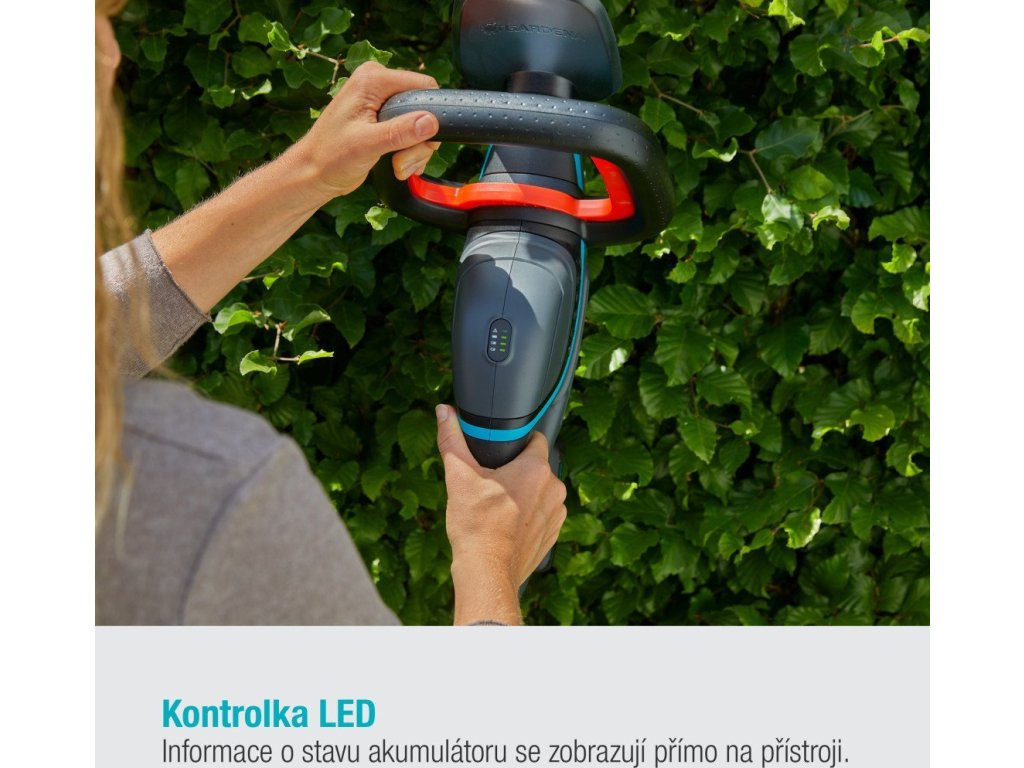 Akumulátor poskytuje dobu chodu v trvání až 45 minut nebo zvládne ostříhat až 150 metrů čtverečních živého plotu. Díky jasně viditelnému LED indikátoru přímo na přístroji jste vždy informováni o aktuální úrovni nabití, takže budete vědět, kdy je čas si udělat přestávku, abyste jej buď nabili, nebo připojili jiný akumulátor.