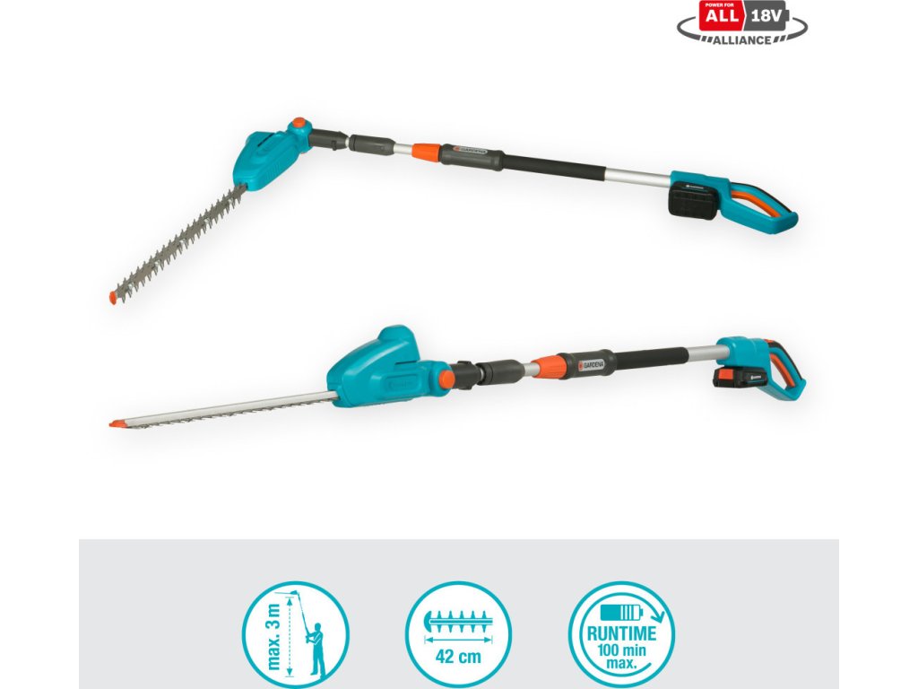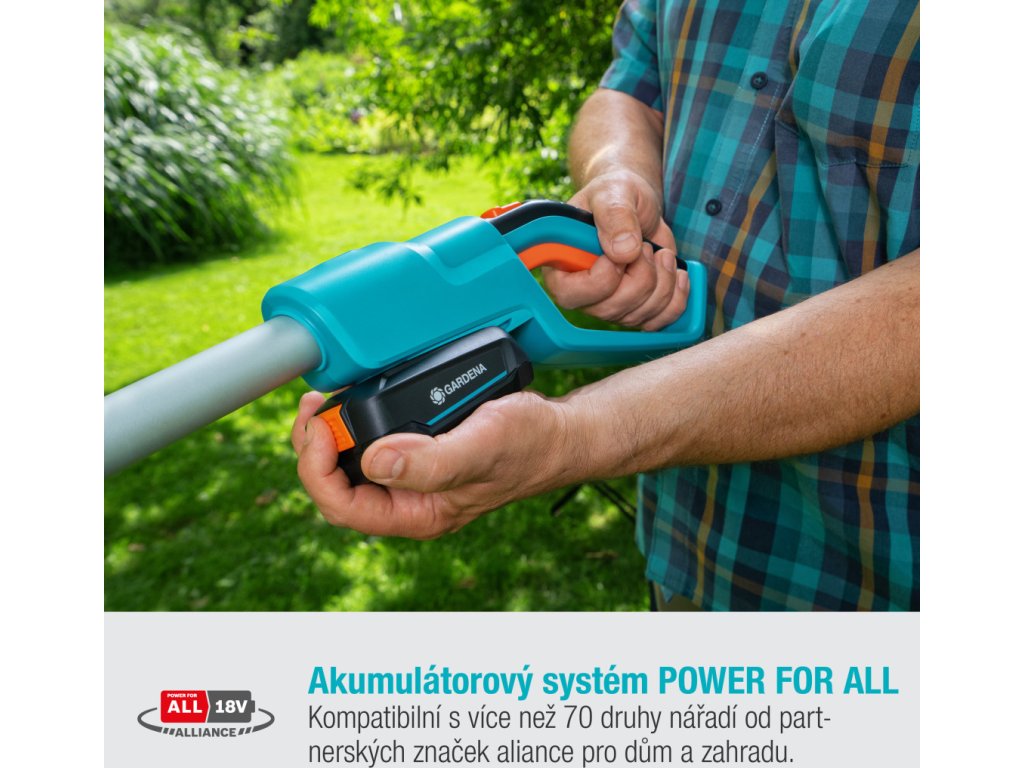 GARDENA akumulátorové teleskopické nůžky na živý plot THS 42/18V P4A se dodávají s 18 V akumulátorem z Aliance POWER FOR ALL a nabíječkou jako sada k okamžitému použití. Aliance POWER FOR ALL je jednou z největších aliancí předních světových výrobců akumulátorů různých značek. Akumulátor je proto kompatibilní s řadou dalších přístrojů pro dům a zahradu – takže ušetříte peníze a zajistíte si trvalou flexibilitu. Vášeň poháněná značkou GARDENA - zahradní akumulátorové vybavení, které vám poskytuje svobodu při práci.