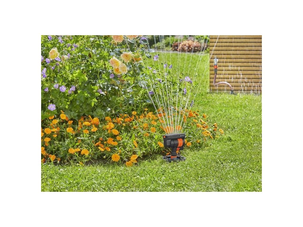 GARDENA startovací set s výkyvným zavlažovačem vytváří nový a účinný způsob zavlažování vaší zahrady. Kromě samostatně dostupných instalačních trubek a připojovací hadice obsahuje sada vše, co potřebujete k pohodlnému zásobování vašich rostlin na zahradě vodou. Doby, kdy se hadice povalovaly po zahradě a musely se navíjet, jsou pryč. Připojovací krabice slouží jako spojovací článek mezi vodovodním kohoutkem a trubkou v zemi. Pomocí přiloženého T-kusu můžete potrubí dokonce odbočit do dalšího směru. Dvě vodní zásuvky slouží jako praktické kohoutky, do kterých můžete připojit nejen hadici, ale také výkyvný zavlažovač. Čerpat vodu je stejně snadné jako otočení kohoutku v domácnosti. Jakmile k vodní zásuvce připojíte hadici nebo zavlažovač, vytvoří se spojení. Když hadici odpojíte, přívod vody se okamžitě přeruší díky integrovanému uzavíracímu ventilu. S výkyvným zavlažovačem zavlažíte plochu od 9 do 216 m2 bez tvorby kaluží. Hlavu zavlažovače lze ručně otáčet o 360 °. Připojovací krabice a vodní zásuvky jsou vybaveny sítkem na nečistoty a zavlažovač filtrem, který lze vyjmout a snadno jej vyčistit pod tekoucí vodou. Všechny komponenty jsou opravdu trvanlivé díky použití velmi kvalitních materiálů a jsou odolné vůči UV záření. Instalací odvodňovacího ventilu chráníte systém také před poškozením mrazem. Startovní sadu lze neomezeně prodloužit pomocí prvků řady Pipeline. Startovací sada GARDENA s výkyvným zavlažovačem je vyrobena v Evropě. Voda všude tam, kde je potřebná. Snadný přístup k vodě: potrubí vedené pod zemí.