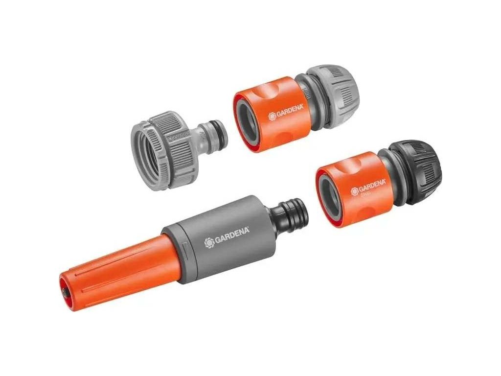 Kompletní startovací sada pro zavlažovací a čistící úkoly kolem domu a na zahraděZákladní startovací sada GARDENA vám poskytne potřebné díly pro zavlažování a úklid ve vašem domě a zahradě. Sada připravená k použití obsahuje šroubení s adaptérem vhodný pro vodovodní kohoutky se závitem 26,5 mm (G 3/4") a 33,3 mm (G 1"), rychlospojku Basic, stopspojku Basic a postřikovač Basic. Díky plně nastavitelnému rozstřiku, od jemné mlhy až po plný proud, je postřikovač ideální pro různé zavlažovací a čisticí práce, jako je čištění teras nebo zahradního nářadí. Stopspojka zajišťuje automatické zastavení vody po odejmutí koncového postřikovače. Po připojení nového nástavce se voda znovu spustí. Díky šroubení s funkcí Anti-Splash můžete pracovat bez rozstřikování. Hadicové fitinky se speciálně tvarovanými upínacími maticemi zajišťují bezpečné uchycení hadice. Díky výraznému barevnému schématu můžete snadno odlišit použití jednotlivých dílů: šedé jsou určeny pro začátek hadice, tmavé pro její konec. Sada je vhodná pro hadice 1/2" až 5/8" (13–15 mm). Základní startovací sada GARDENA je kvalitní výrobek vyrobený v Německu a GARDENA na něj poskytuje záruku v trvání 5 let. Original GARDENA System.