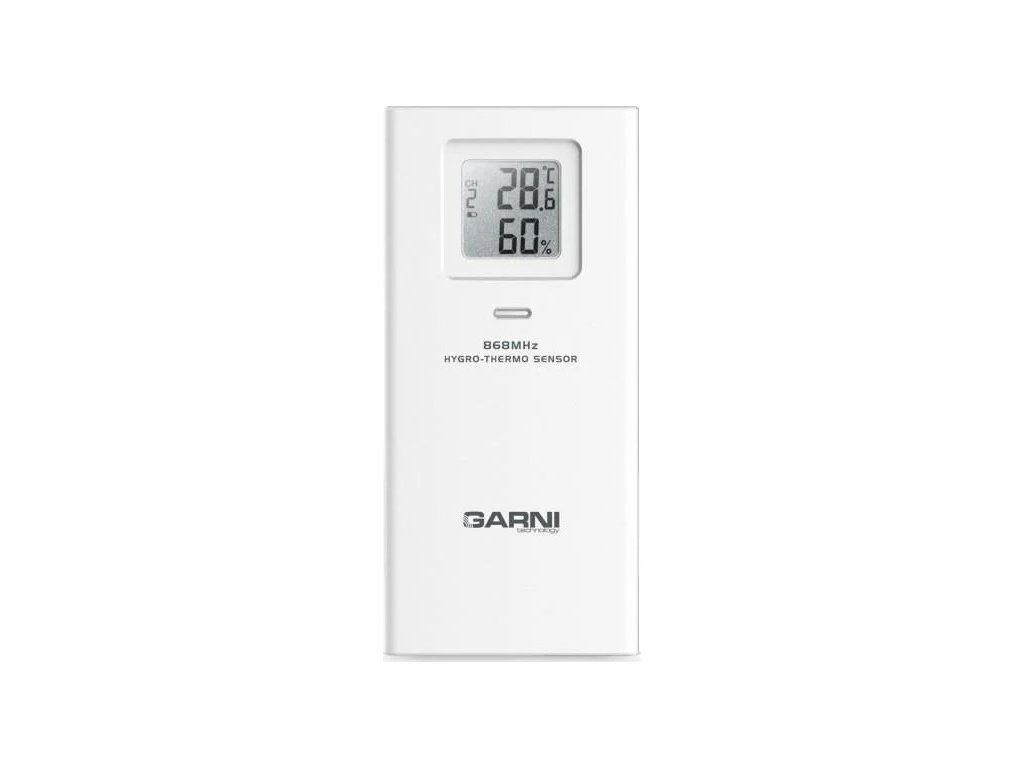 Sedmikanálové bezdrátové čidlo pro měření teploty a relativní vlhkosti, určeno pro Wi-Fi meteorologickou stanici GARNI 3015 Arcus, GARNI 3015 Arcus 2GEN, GARNI 2055 Arcus, GARNI 2055 Arcus 2GEN, GARNI 2040 Arcus, GARNI 2040 Arcus 2GEN, GARNI 1085 Arcus, GARNI 1025 Arcus, GARNI 975, GARNI 935PC, GARNI 925T, GARNI 2060 Arcus, hobby meteostanici GARNI 750, chytrý digitální teploměr s vlhkoměrem GARNI 419T a WiFi meteo bránu GTway Plus.vlhkosti odolné, krytí IPX3 (odolné proti vodní tříšti)