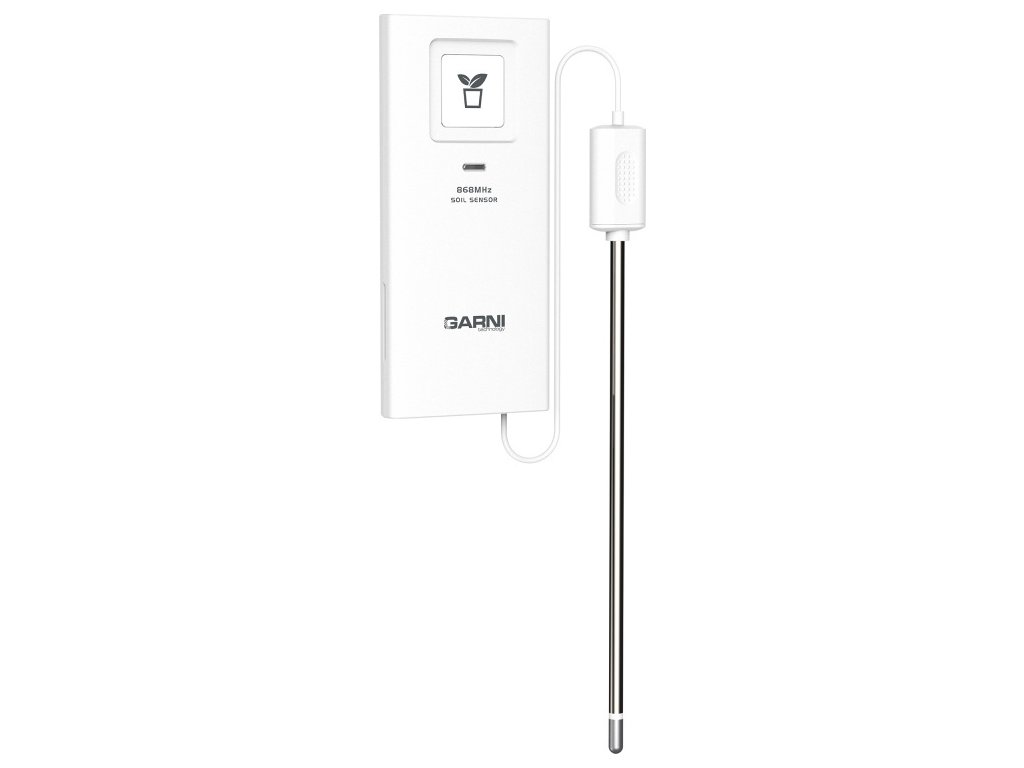Sedmikanálové bezdrátové čidlo pro měření teploty a relativní vlhkosti půdy, určeno pro Wi-Fi meteorologickou stanici GARNI 3015 Arcus, GARNI 3015 Arcus 2GEN, GARNI 2055 Arcus, GARNI 2055 Arcus 2GEN, GARNI 2040 Arcus, GARNI 2040 Arcus 2GEN, GARNI 1085 Arcus, GARNI 1025 Arcus, GARNI 975, GARNI 935PC, GARNI 925T, hobby meteostanici GARNI 750, chytrý digitální teploměr s vlhkoměrem GARNI 419T a WiFi meteo bránu GTway Plus..vlhkosti odolné, krytí IPX3 (odolné proti vodní tříšti)
