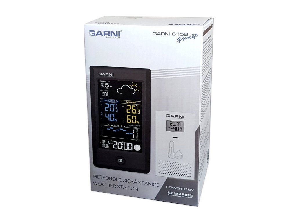 1 x hlavní jednotka GARNI 615B Precise 1 x bezdrátové čidlo GARNI 063H 1 x síťový adaptér český, slovenský, anglický, německý, nizozemský, polský a maďarský návod
