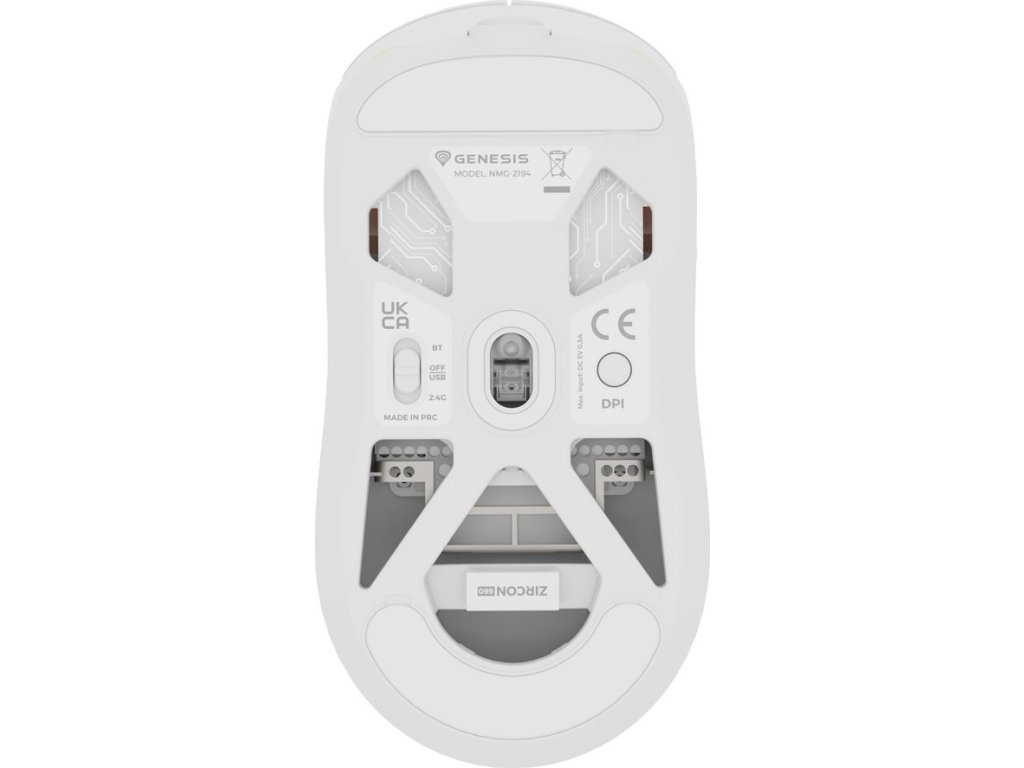 GENESIS Zircon 660 Pro je ještě lehčí, váží pouhých 57 gramů. Co to znamená v praxi? Větší stabilitu při zvedání a výrazně rychlejší odezvu. Této nízké hmotnosti jsme dosáhli díky speciálně navrženému rámu, promyšlenému výběru materiálů a výřezům přítomným na jeho spodní straně. To vše proto, aby byl váš herní zážitek pohodlnější.