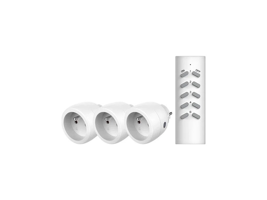 - obsah balení: 3 zásuvky, 1 dálkový ovladač