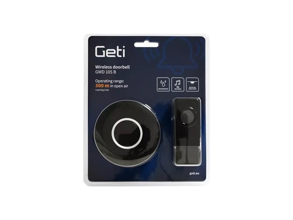 Popis produktuSpolehlivý zvonek GETI GWD 105 B se hodí nejen k domu či bytu, ale také do kanceláří, továren či recepčních hal. Velkou předností tohoto zvonku je jeho bezdrátové provedení s dosahem až 300 m ve volném prostoru. Instalace zvonku je velmi snadná, spárování mezi vysílačem a zvonkem probíhá automaticky. Funkce LEARNING CODE navíc umožnuje vzájemné spárování více tlačítek a zvonků. Nemusíte se obávat ani deštivého počasí, tlačítko vysílače s LED indikací je voděodolné. Zvonek má jednoduchý moderní design, 4 stupně hlasitosti, výběr z 52 vyzváněcích melodií a světelnou signalizace zvonění. Velkou výhodou zvonku je zapamatování si nastavené melodie a hlasitosti i po odpojení přístroje od elektrické sítě.