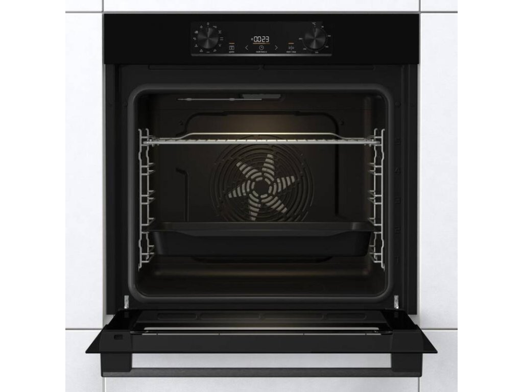 Trouba Gorenje BO6735E02BK s objemem 77 litrů nabízí velký prostor pro velké kusy jídla k pečení. Inovativní zvětšení vnitřního prostoru trouby nabízí možnost využití celé šířky trouby. Více prostoru nabízí každý plech a perfektní technologie se postará o dokonalé propečení na všech úrovních.