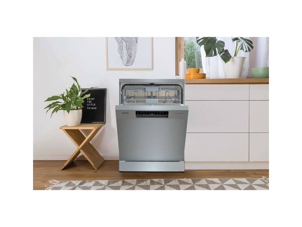 Gorenje GS673B60X, nerezováHledáte do své domácnosti úspornou myčku s praktickými funkcemi? Volně stojící myčka na nádobí Gorenje GS673B60X se velmi snadno přizpůsobí vašim potřebám, protože kromě bohaté nabídky programů také nabízí SMART technologii s připojením k Wi-Fi. Navíc je ideální volbou pro početnější rodiny, protože myčka pojme naráz až 16 sad nádobí. Díky výškově nastavitelnému MultiClack systému horního koše si spotřebič hravě poradí i s velkými rodinnými oslavami. Pomocí intuitivního dotykového panelu TouchControl si můžete jednoduše zvolit požadovaný program nebo teplotu mytí. Pro dokonalé výsledky mytí budete mít na výběr celkem z 7 mycích programů (Auto, Intenzivní mytí, ECO, Hygiena, Křišťálové sklenice, 1h mytí, Noční mytí), a rovněž 7 mycích teplot (40, 45, 50, 55, 60, 65, 70 °C). Například auto program sám odhadne míru znečištění nádobí, podle které následně upraví teplotu a množství vody. Pro co největší úsporu můžete zase použít Eco program.
