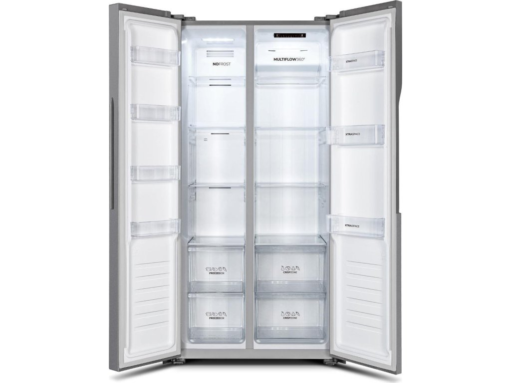 Popis produktuamerická chladnička • výška 177,7 cm • objem chladničky 266 l / mrazničky 175 l • energetická třída E • 15 let záruka na kompresor • systém MultiFlow 360° – rovnoměrně distribuuje ionizovaný vzduch do všech částí spotřebiče • funkce FastFreeze – extrémní snížení teploty při vložení čerstvých potravin • interiér XtraSpace – spousta místa pro skladování velkého množství potravin • režim HolidayMode – úsporný prázdninový režim • hlučnost 42 dB • V × Š × H: 177,7 × 83,2 × 62,3 cm