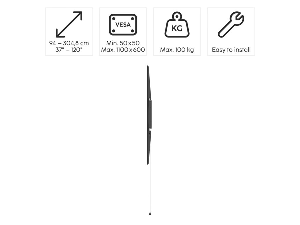 - extra velký fixní držák pro největší televizory s úhlopříčkou až 120" (305 cm)- VESA max. 1100x600, nastavitelná ramena pro jakoukoliv menší rozteč závitů