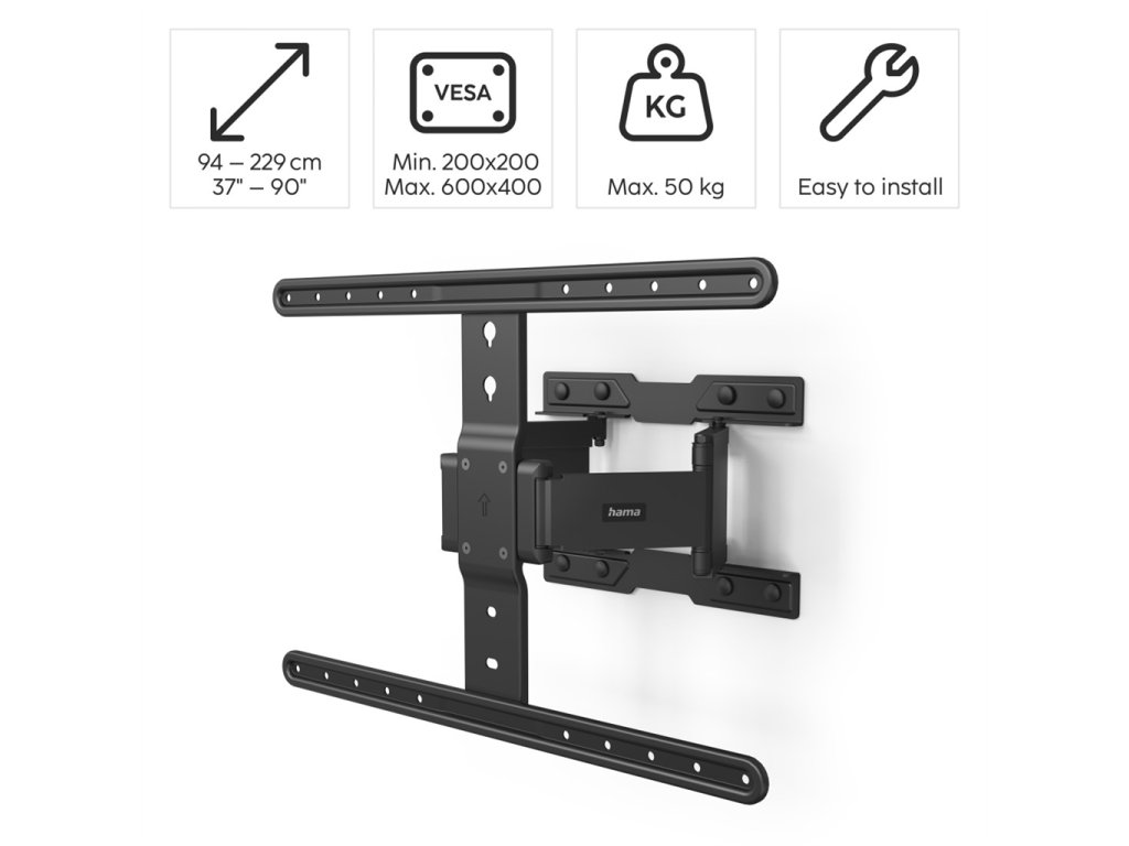 - pohyblivý držák pro TV obrazovky s úhlopříčkou cca 37" až 90" (94 až 229 cm)- VESA max. 600x400, nastavitelná ramena i pro menší rozteče závitů