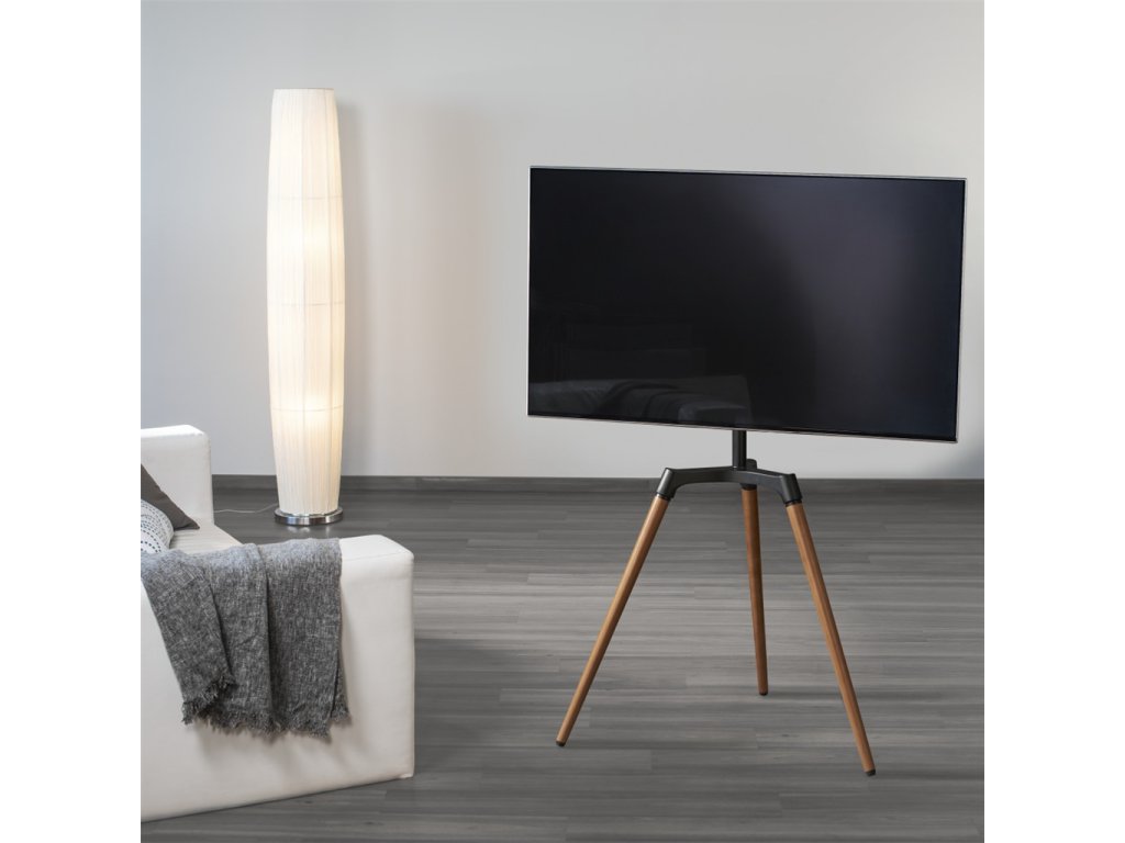 - samostatně stojící podlahový stojan s televizním držákem- moderní a stylové provedení z pravého dřeva a matné práškované oceli