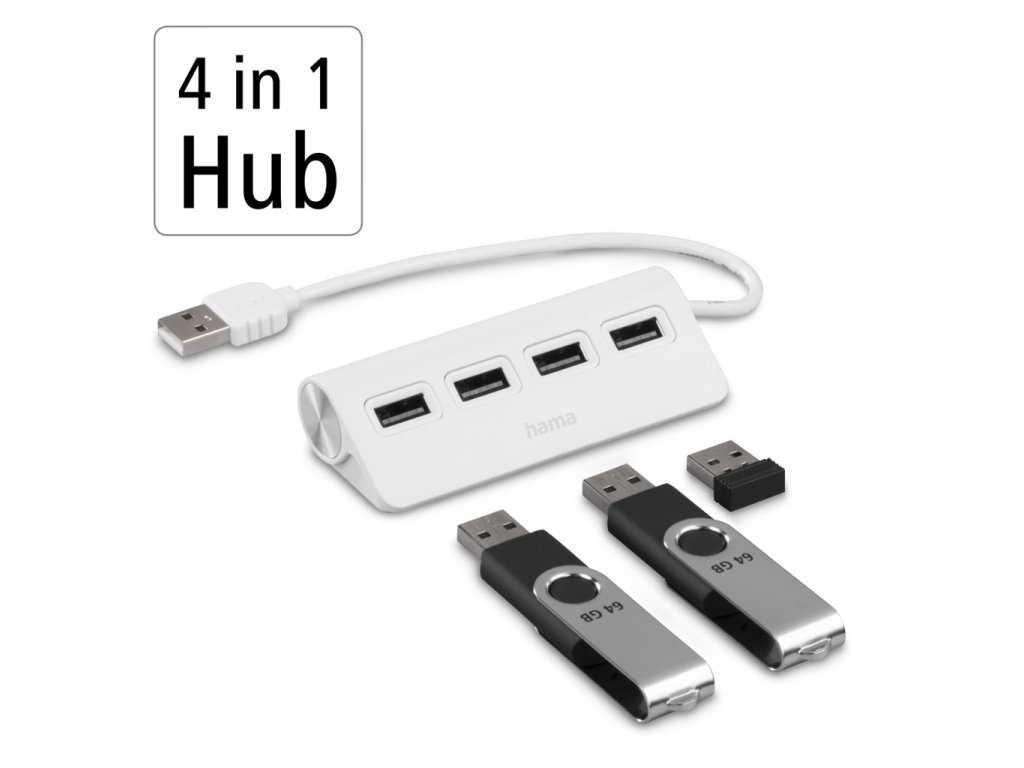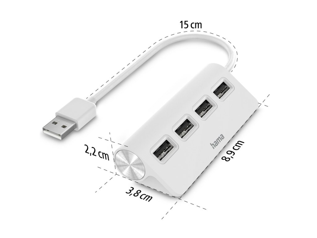 Hama USB hub, 4 porty, USB 2.0, 480 Mbit/s, bílý