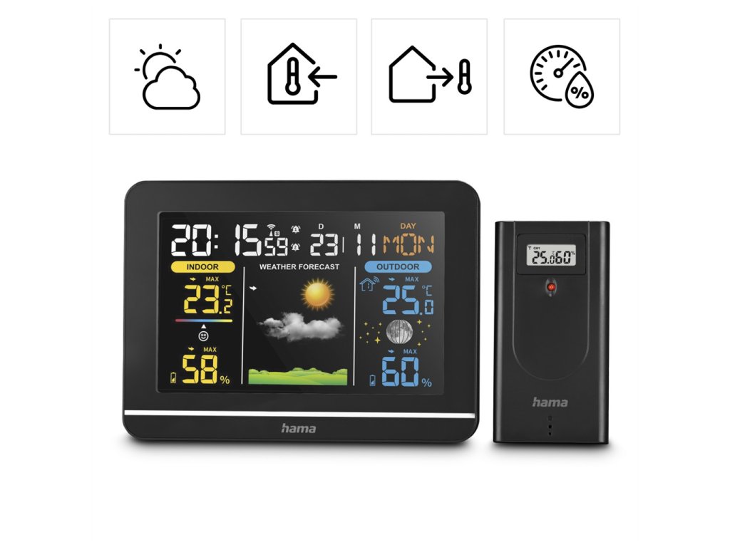 - dvoudílný set: základna + bezdrátový senzor; s barevným displejem a intuitivním ovládáním- pro digitální zobrazení venkovní a vnitřní teploty a vlhkosti vzduchu, předpovědi počasí, fáze měsíce, data, času a dne v týdnu