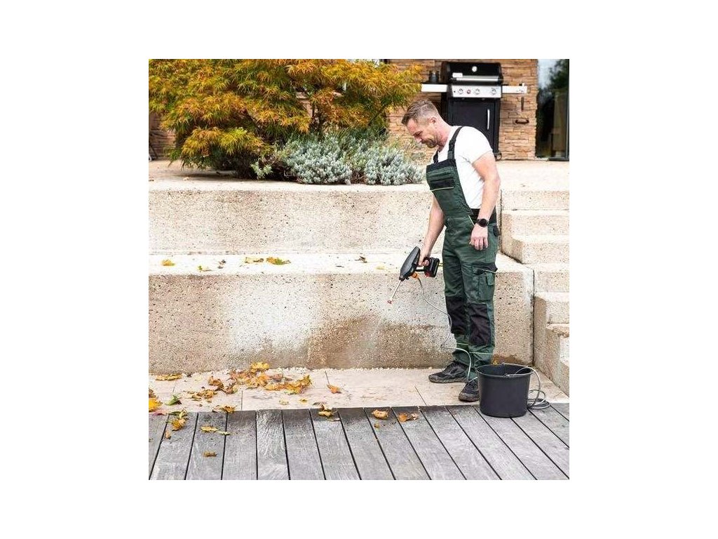 Akumulátorová tlaková čisticí pistole s přípojkou na zahradní hadiciFunguje i bez vodovodního kohoutku: flexibilní tlakovou hadici jednoduše umístíte do kbelíku s vodou nebo do bazénu apod.