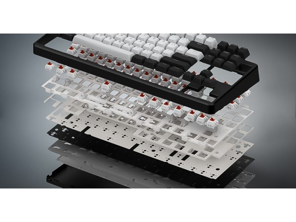 Optimalizovaný zvuk a pocit: Vícevrstvá izolace proti hluku a vibracím spolu s ručně lubrikovanými stabilizátory z prémiového POM plastu zajišťuje tichý a příjemný chod, který vám umožní soustředit se na hru nebo práci.