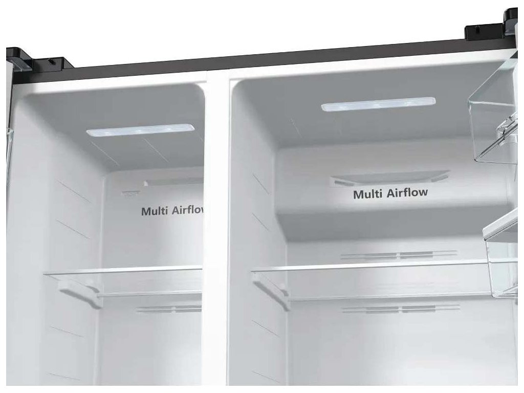 Chladnička Hisense RS711N4WFE je vybavena inovativní technologií Total No Frost s unikátním chladicím systémem umístěným v mrazicím oddílu. Technologie brání vzniku ledu a námrazy, díky čemuž vám odpadá nutnost odmrazovat a snižuje se spotřeba energie. Mrazicí část o celkovém objemu 192 l se může pochlubit LED osvětlením, 2 snadno přístupnými zásuvkami, 4 skleněnými policemi uvnitř mrazničky a 3 policemi ve dveřích. Praktická funkce Super Freeze zmrazí díky dvěma ventilačním otvorům za horním mrazicím boxem veškeré potraviny na teplotu -18 °C, aby si uchovaly svoji chuť, vzhled a tělu prospěšné látky.