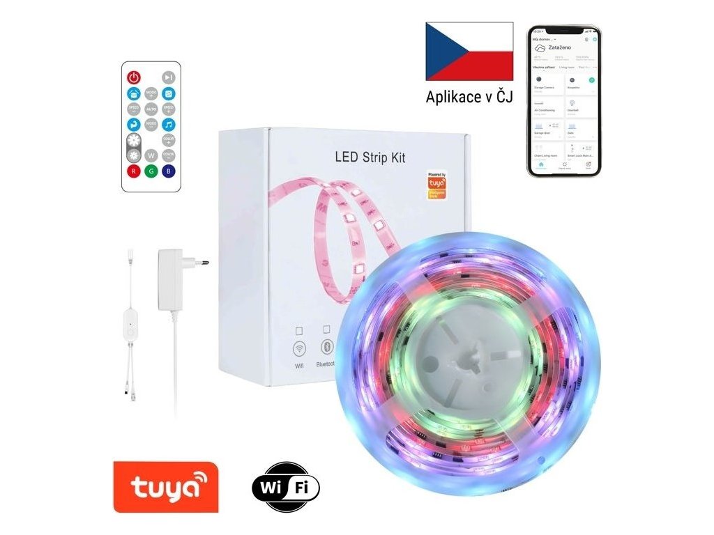 Obsah balení: LED pásek, kontroler, napájecí zdroj, dálkový ovladač, uživatelský manuál