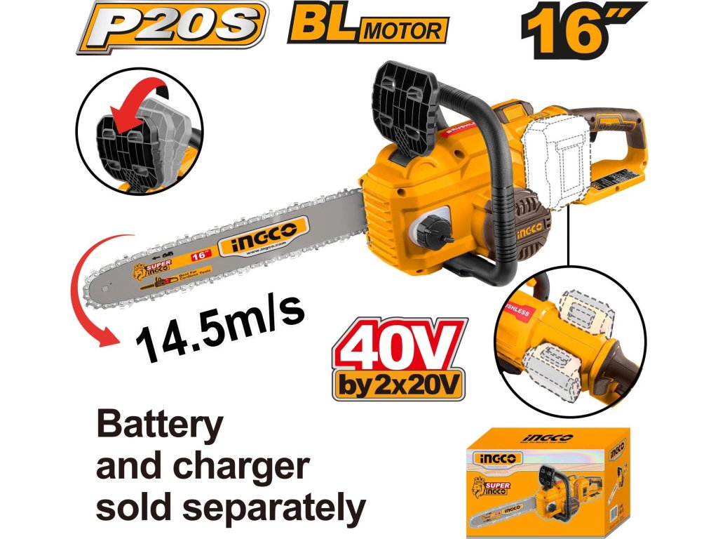 Ingco CGSLI40168 AKU řetězová pila bez baterie a nabíječky