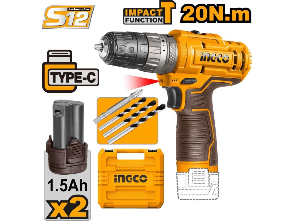 Ingco CIDLI12202E AKU šroubovák s příklepem vč. 2ks baterie