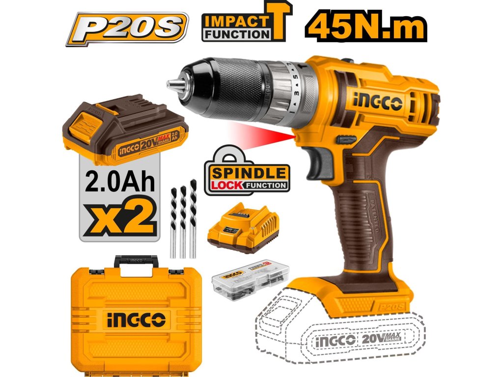 Ingco CIDLI201452E AKU vrtací šroubovák s příklepem vč. 2ks baterie a nabíječky
