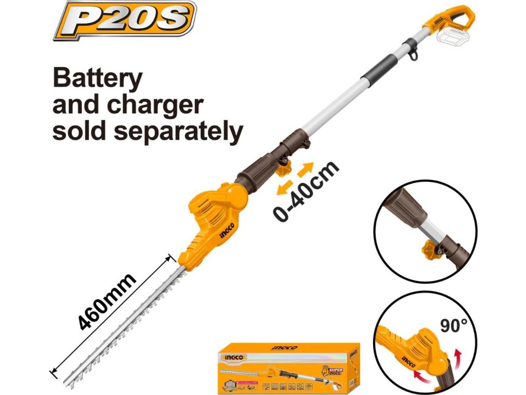 Ingco CPHT201601 AKU nůžky na živý plot otočné bez baterie a nabíječky