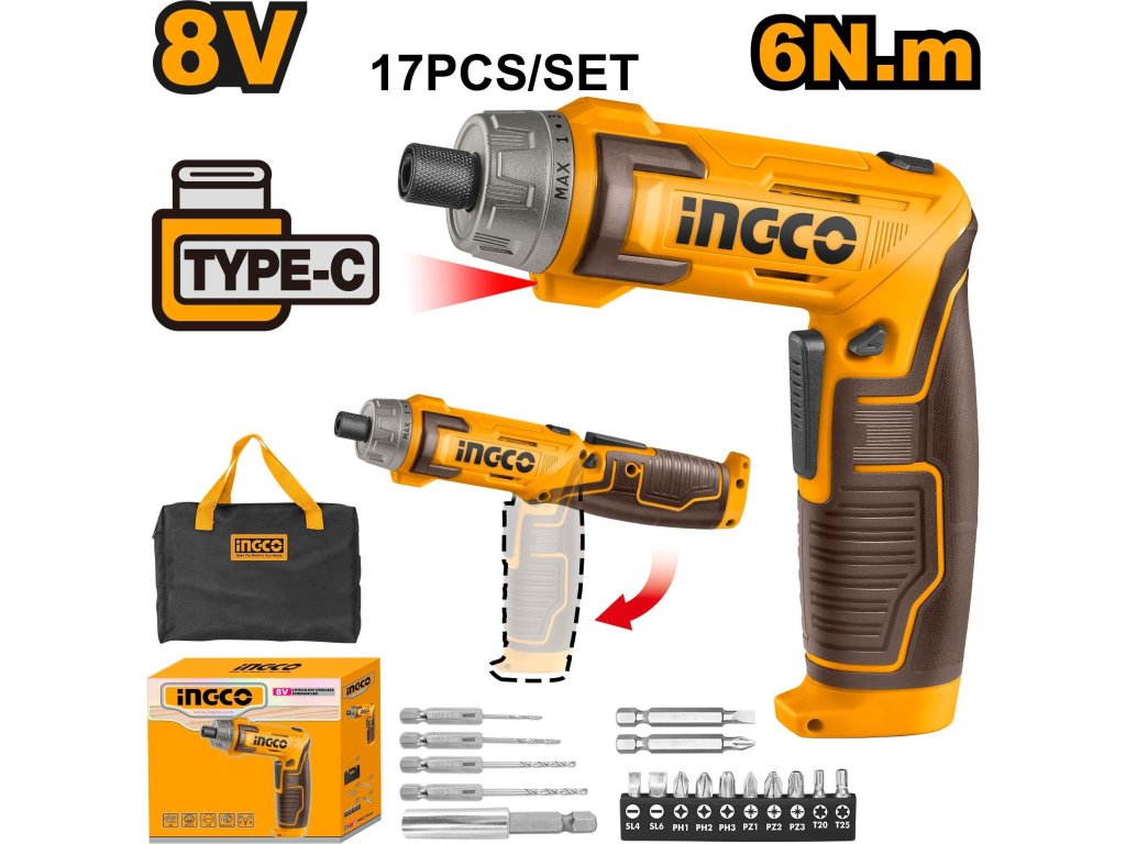 Ingco CSDLI0802 AKU šroubovák s integrovanou baterií + sada příslušenství