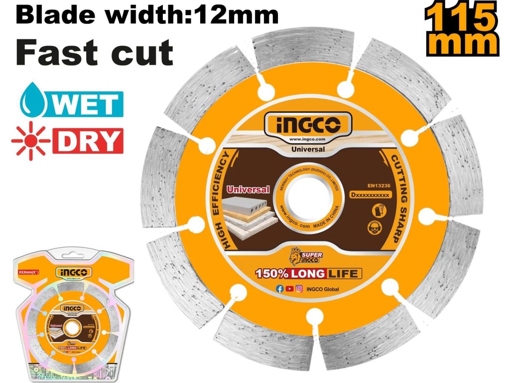 Ingco DMD0111513 Kotouč řezný, diamantový, suché řezání 115 x 1 mm