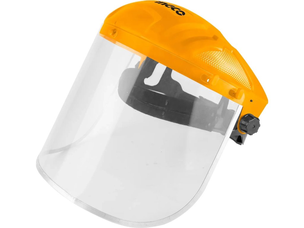 Obličejový štít o rozměrech 39 x 20 cm poskytuje spolehlivou ochranu obličeje před různými mechanickými a chemickými riziky. Je vybaven nárazuvzdorným kšiltem, který chrání čelo a horní část obličeje. Pokrývka hlavy je vybavena nastavitelnými knoflíky pro pohodlné a bezpečné upevnění na hlavě. Štít je navíc doplněn antibakteriální potní gumičkou, která zvyšuje komfort při dlouhodobém nošení a zabraňuje podráždění pokožky.