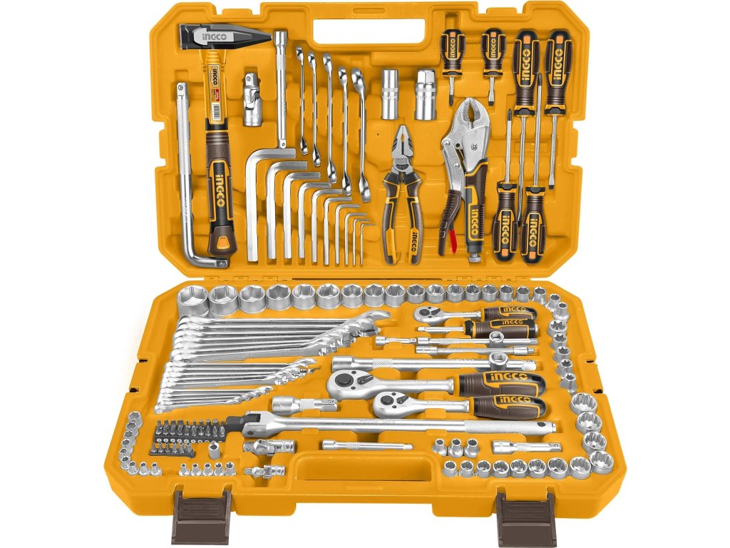 Sada nářadí v kufříku 142 ks, obsahuje: 19ks 1/2" šestihranný: 8-10-12-13-14-15-16-17-18-19-20-21-22-23-24-25-27-30-32 mm, 5 ks 1/2" hvězdicový: E10-12-14-16-20 mm, 1 ks 1/2" flex. rukojeť 375 mm, 1 ks 1/2" ráčnový klíč 45T, 2ks 1/2" prodlužovací tyč: 75 mm, 250 mm, 1 ks 1/2" univerzální kloub, 1 ks 1/2" třícestný adaptér, 2 ks 1/2" 16 a 22 mm, 1ks 1/2 " 10" rukojeť, 15 ks 3/8" 12pt. zásuvka: 6-7-8-9-10-11-12-13-14-15-17-18-19-21-22, 1ks 3/8" ráčnový klíč 45T, 2ks 3/8" prodlužovací tyč 75 mm a 150 mm, 1ks 3/8" univerzální kloub, 26 ks 1/4 " 25 mm šroubovací bity: PH0-PH1-PH1-PH2-PH2-PH3-PZ0-PZ1-PZ2-PZ3-SL4-SL5-SL6-SL7-H2-H3-H4-H5-H6-T10H-T15H-T20H-T25H-T27H-T30H-T40H, 1 ks držák, bitů 9 ks 1/4" šestihranný: 4-4,5-5-5,5-6-7-8-9-10, 5 ks 1/4" hvězdicový: E4-5-6-7-8, 1ks 1/4" ráčnový klíč 45T, 3 ks 1/4" prodlužovací tyč: 50 mm, 100 mm a 150 mm, 1ks 1/4" univerzální kloub, 1ks 3/8" (F) * 1/4" (M) třícestný, adaptér 1ks 1/4 " 150 mm otočná rukojeť, 1ks 1/4" 150 mm flexibilní prodlužovací tyč, 17 ks kombinovaný klíč: 6-7-8-9-10-11-12-13-14-15-16-17-18-19-21-22-24, 5 ks klíč na převlečné matice: 8-10-10-12-11-13-12-14-17-19, 10 ks imbusový klíč: 2,5-3-4-5-6-7-8-10-12-14 mm, 1 ks 300g kladivo, 1 ks 7" kombinované kleště, 1ks 10" zakřivený klíč, zámek čelistí, 2ks S2 plochý šroubovák: SL6,5 x 100 SL6,5 x 150, 2ks S2 křížový šroubovák: PH2 x 100 PH2 x 150, 2 ks stubby šroubovák: PH2 x 38 SL6,5 x 38Doplňkové parametry