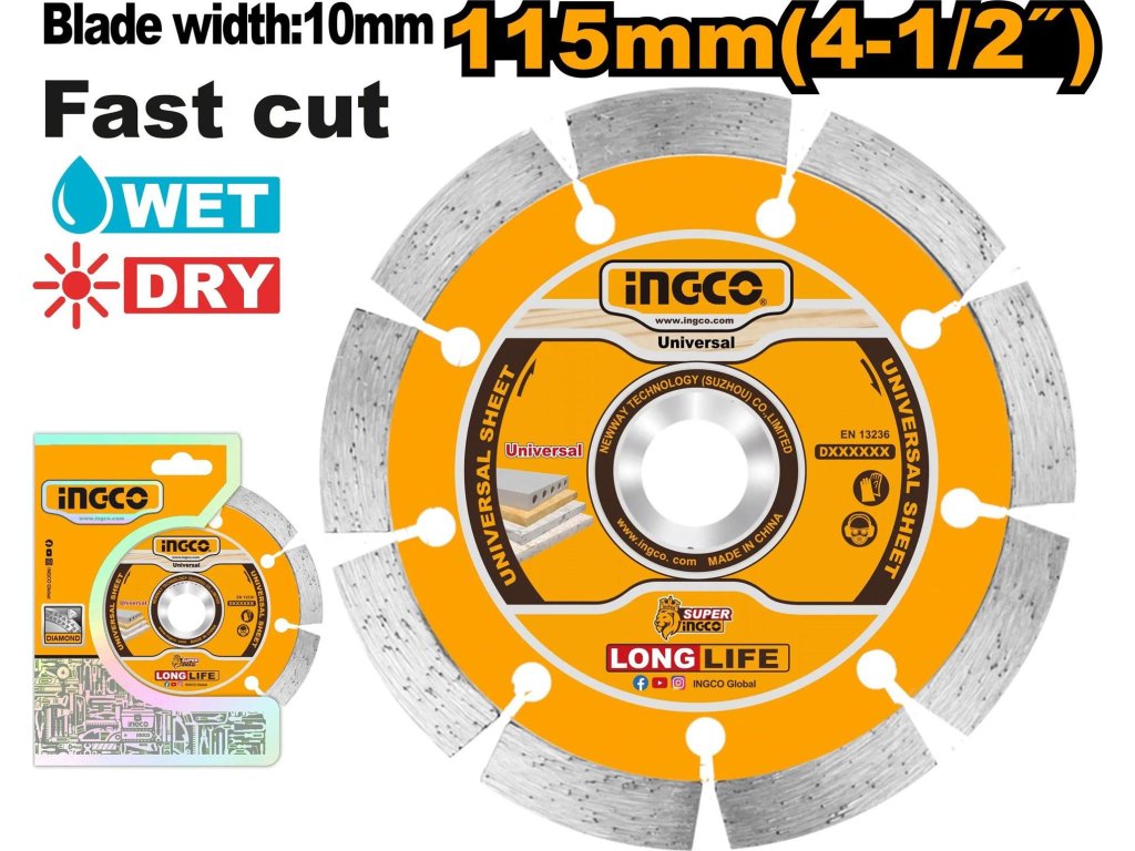 Tento vysoce kvalitní řezný kotouč je ideální pro řezání široké škály kamenů, včetně betonu, cihel, vápence, žuly a mramoru. S průměrem 115 mm (4-1/2") a šířkou kotouče 10 mm je kotouč navržen pro efektivní a přesné řezání tvrdých materiálů. Díky robustní konstrukci a kompatibilitě s většinou úhlových brusek je vhodný pro mokré i suché řezání, což zajišťuje flexibilitu při použití v různých pracovních podmínkách. Kotouč je balen v barevné krabici pro bezpečné skladování a snadný přenos.Klíčové vlastnosti: