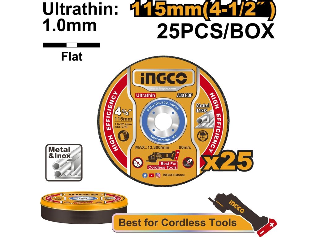 Ingco MCD11011525 Kotouč řezný kov 115 x 1,2 x 22,2 mm, sada 25ks