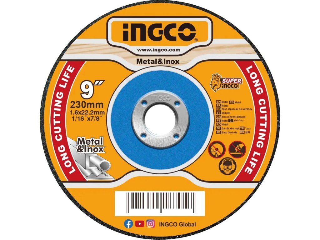 Řezný kotouč určený pro efektivní a přesné řezání kovů a nerezových materiálů. S průměrem 230 mm (9") a tloušťkou 1,6 mm (1/16") je ideální pro použití s úhlovými bruskami. Díky plochému středu a odolné konstrukci poskytuje dlouhou životnost a stabilní výkon při práci s kovovými materiály.