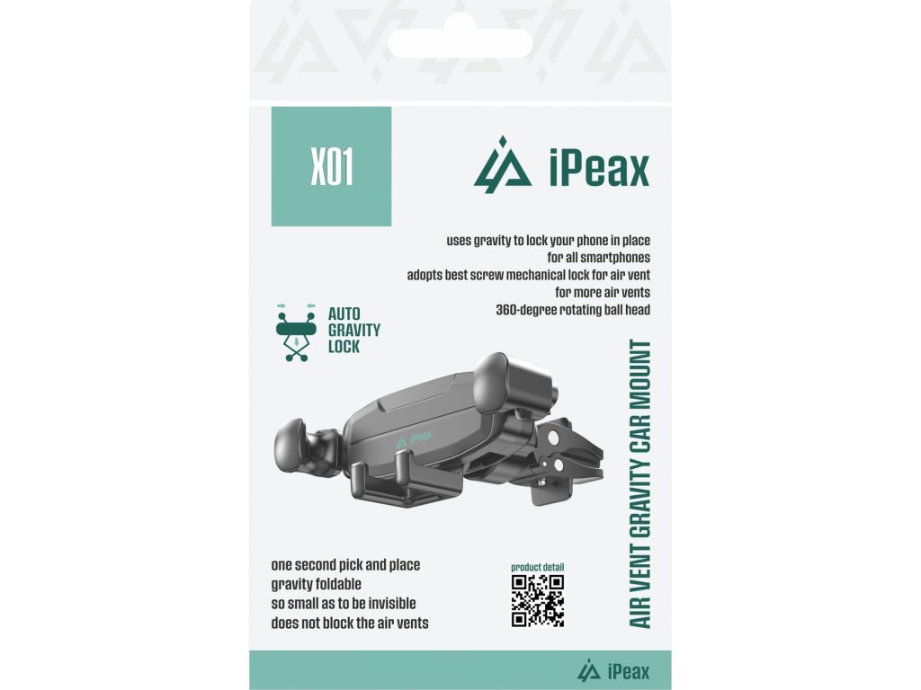 iPEAX X01 je mechanický držák do auta s inteligentním gravity systémem, který automaticky uchytí váš telefon pomocí vlastní hmotnosti. Stačí telefon vložit mezi dvě boční čelisti a dolní opěrku – držák se automaticky přizpůsobí a telefon pevně zajistí.