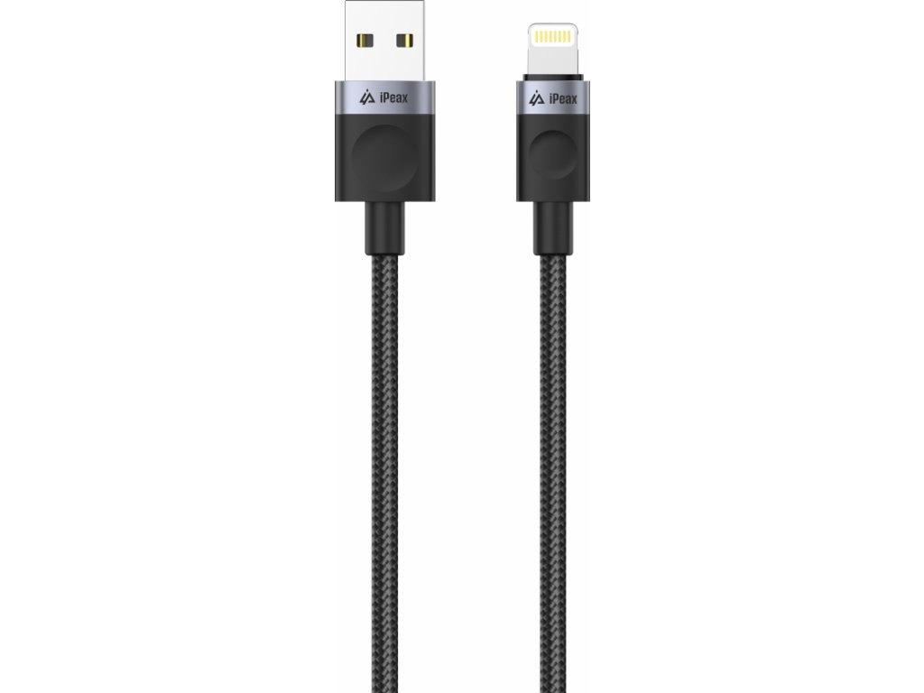 iPEAX TEXTILNÍ KABEL USB-A / LIGHTNING 1M, USB 2.0 ČERNÝ