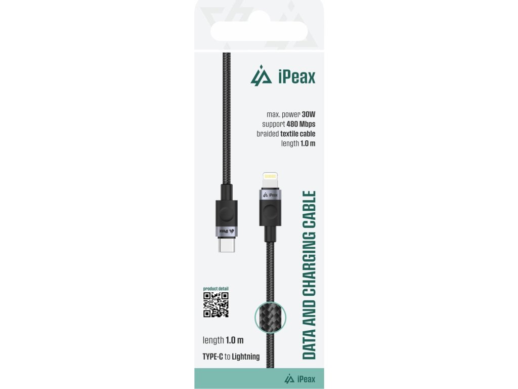 iPEAX TEXTILNÍ KABEL USB-C / LIGHTNING 1M, USB 2.0 ČERNÝ