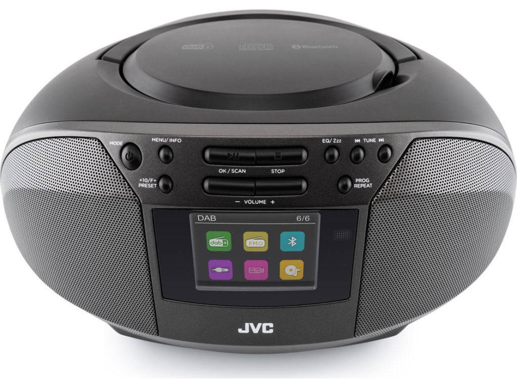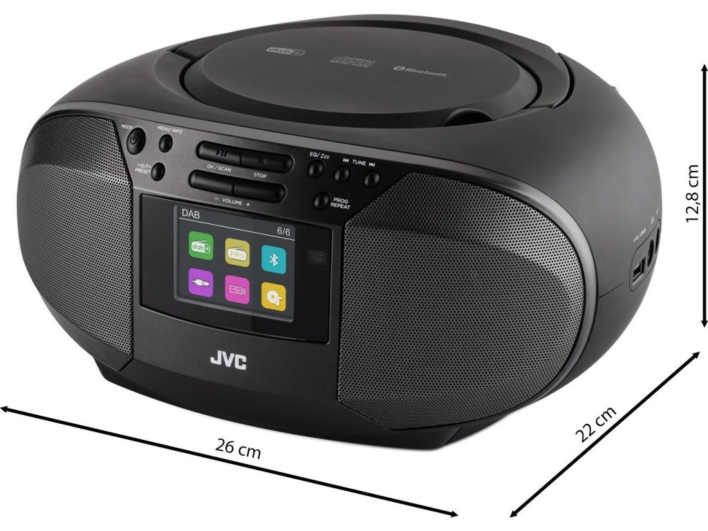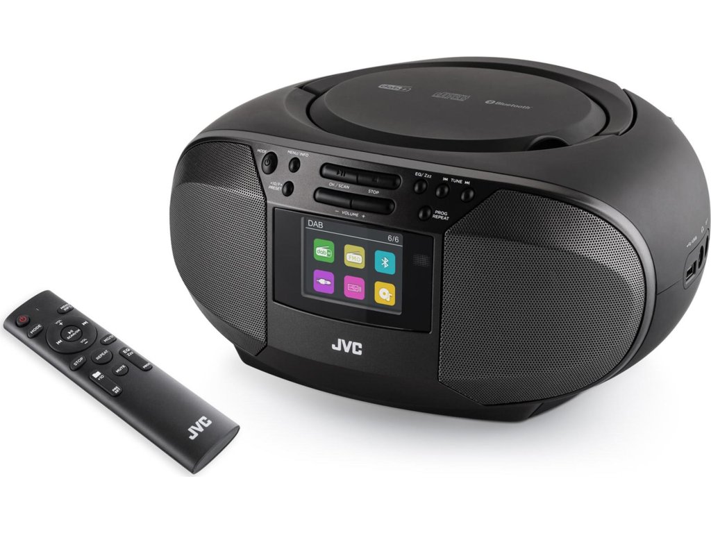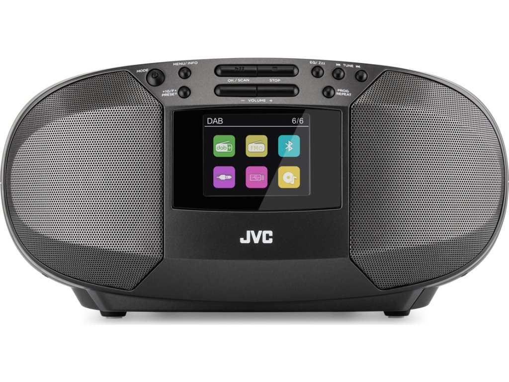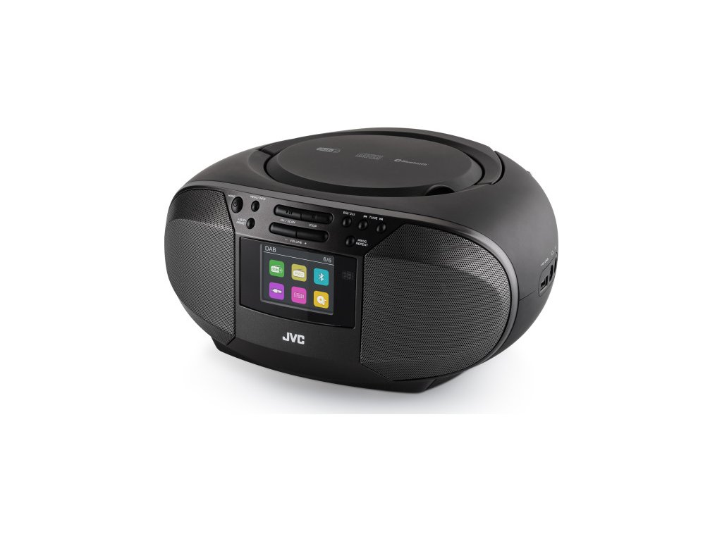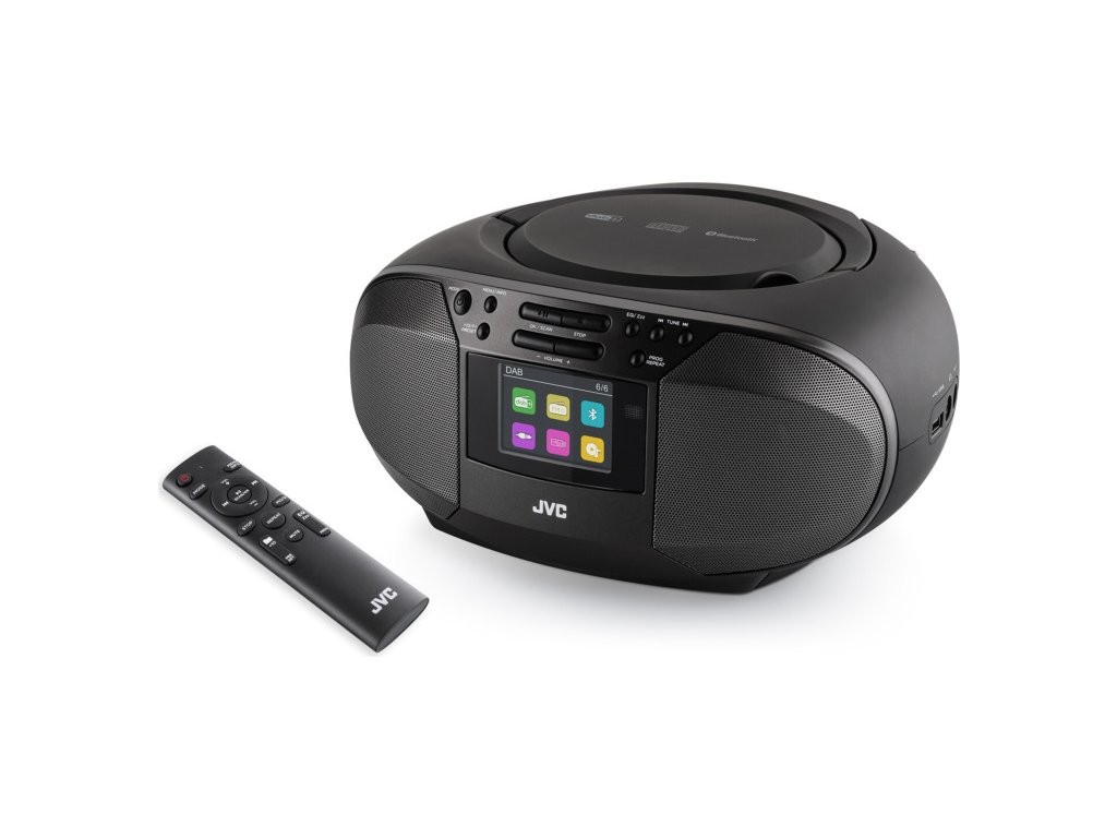 Přenosný CD přehrávač s DAB+ tunerem, Bluetooth a barevným displejemHledáte přenosný přehrávač s?bohatou nabídkou funkcí? Tento model JVC vám umožní přehrávat oblíbenou hudbu i rádia v?té nejlepší kvalitě. Disponuje digitálním DAB+/FM tunerem pro širokou škálu stanic s čistým digitálním příjmem. Díky automatickému ladění a možnosti uložit si oblíbené stanice nebudete muset ladit stále znovu.