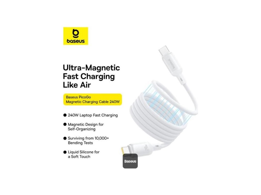 Rozlučte se se zamotanými kabely a pomalým nabíjením. Magnetický samonavíjecí kabel USB-C Baseus PicoGo kombinuje vysokorychlostní 240W nabíjení s elegantním magnetickým samonavíjecím designem a poskytuje maximální pohodlí a efektivitu. Tento odolný kabel je vyroben z prvotřídního tekutého silikonu, je pružný a odolný a vydrží více než 10 000 ohnutí. Tento všestranný kabel je ideální pro nabíjení široké škály zařízení - od iPhonu a MacBooku až po Samsung Galaxy a Google Pixel - a podporuje také přenos dat rychlostí 480 Mb/s, takže můžete synchronizovat a nabíjet současně.Baseus PicoGo Magnetický samonavíjecí kabel USB-C na USB-C 240 W - tekutý silikon, rychlé nabíjení a skladování bez zamotání