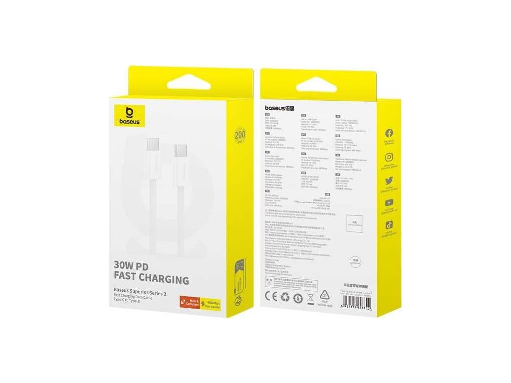 Model: Baseus Superior Series 2 Rychlonabíjecí datový kabel Type-C na Type-C 30W 2m Moon White