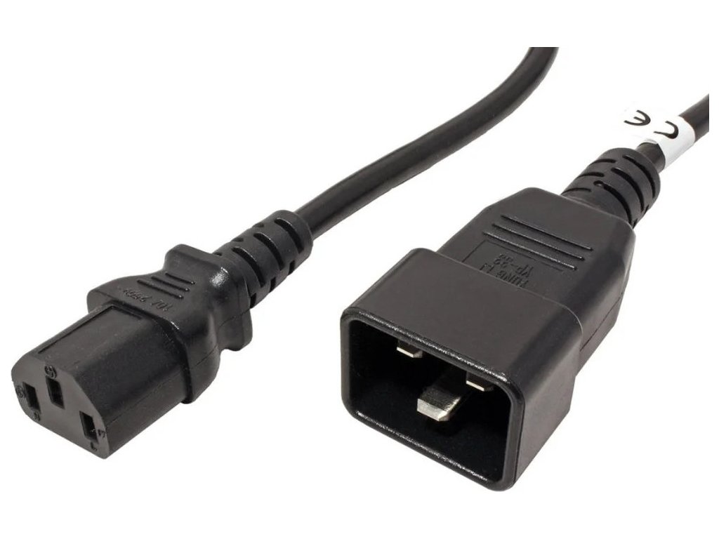 PremiumCord Kabel síťový propojovací 230V 10A 3m, konektory IEC 320 C13 - IEC 320 C20 Pro propojení zařízení s konektorem IEC320 C14 (lichoběžník se svislými kontakty) k UPS nebo napájecímu panelu se zásuvkami IEC320 C19 (obdélník s vodorovnými kontakty). Parametry a specifikace kabelu: První konektor: IEC 320 C13 samička Druhý konektor: IEC 320 C20 samec Průřez vodiče: 3 x 1mm2 Proudové zatížení: max 10A Napětí max.: 250V Barevné provedení: Černé Délka kabelu: 3 mDoplňkové parametry