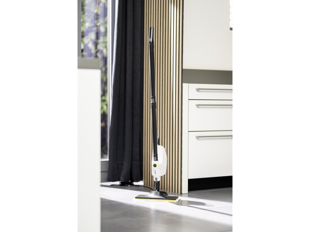 Kompaktní parní mop SC 1 Multi & Up čistí bez použití chemikálií a lze jej v mžiku použít k hloubkovému úklidu celého domu, a to buď jako multifunkční ruční parní čistič, nebo jako všestranný parní mop 3 v 1 díky sadě velkých podlahových hubic EasyFix, která je součástí balení. Pracuje ve třech různých polohách zařízení - horní, střední a dolní - a dokonale se přizpůsobí individuálním požadavkům. Důkladné čištění parním čističem Kärcher odstraní z tvrdých povrchů až 99,999 % virů* a 99,99 % všech běžných domácích bakterií**. Díky kompaktnímu a praktickému designu se přístroj pohodlně používá a snadno se skladuje i v těch nejmenších prostorách. SC 1 Multi & Up je připraven k použití během 30 sekund a díky odnímatelné nádržce na vodu se snadno doplňuje - to znamená, že nemusíte dlouho čekat ani přerušovat práci. Vyměnitelná odvápňovací kazeta zajišťuje automatické odstraňování vodního kamene, čímž je životnost výrobku pětkrát delší. Světelný LED displej s ovládacím panelem umožňuje jednoduché a bezproblémové ovládání. Na displeji jsou vždy zobrazeny různé režimy, jako je ohřev, připravenost k použití, parní režim a termín výměny patrony.Doplňkové parametry