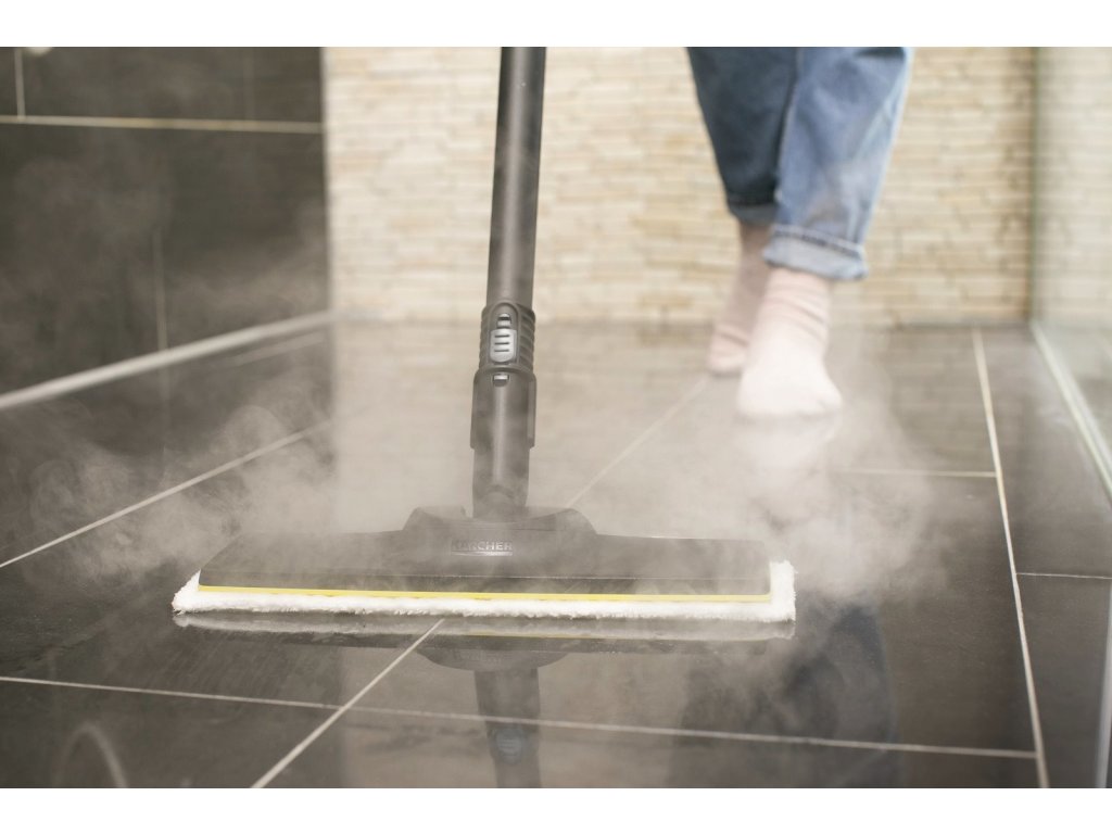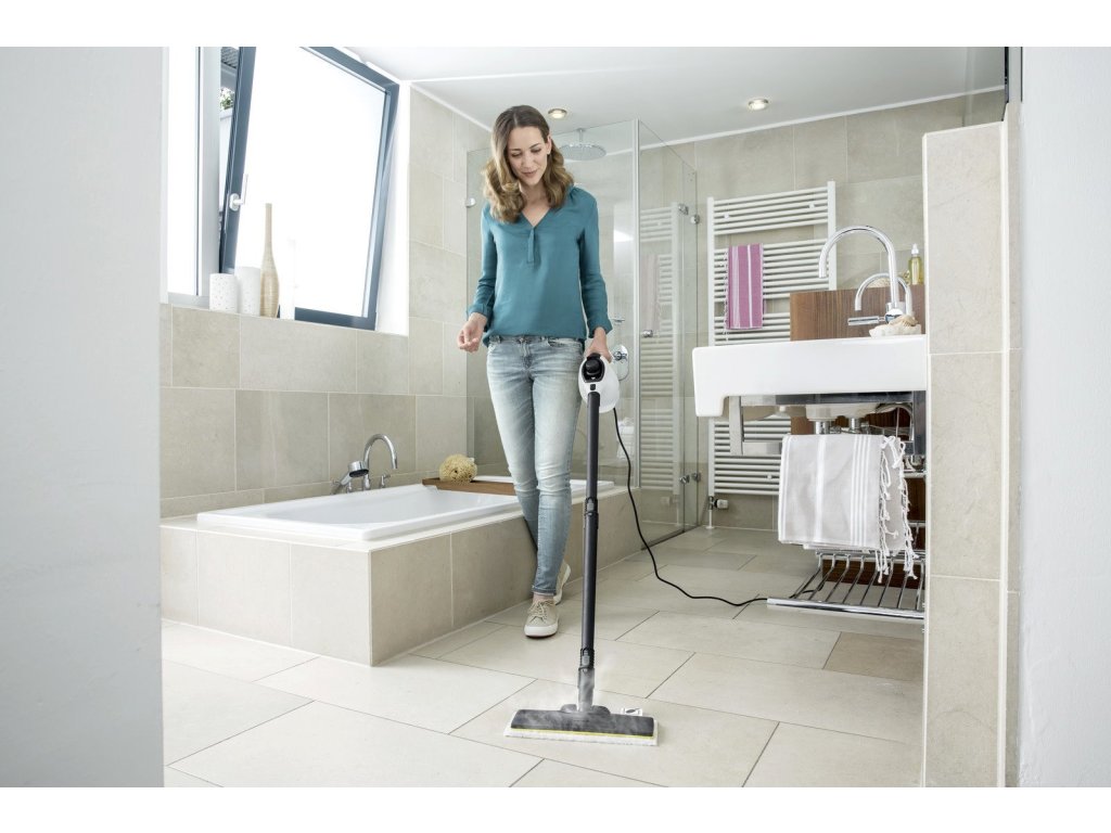 Kompaktní parní čistič Kärcher SC 1 EasyFix 2 v 1 (se sadou na čištění podlah) lze použít kdekoli v domácnosti a čistí bez použití chemie. Důkladné čištění parním čističem Kärcher odstraní 99,999 % virů* a 99,99 % všech běžných domácích bakterií**z typických domácích tvrdých povrchů. Díky kompaktním rozměrům je zařízení ideální pro rychlé a důkladné mezičištění. Až budete hotovi, můžete jej uložit přesně tam, kde je potřeba, aniž by zabíral mnoho místa. Ať už se jedná o čištění armatur, dlaždic,
